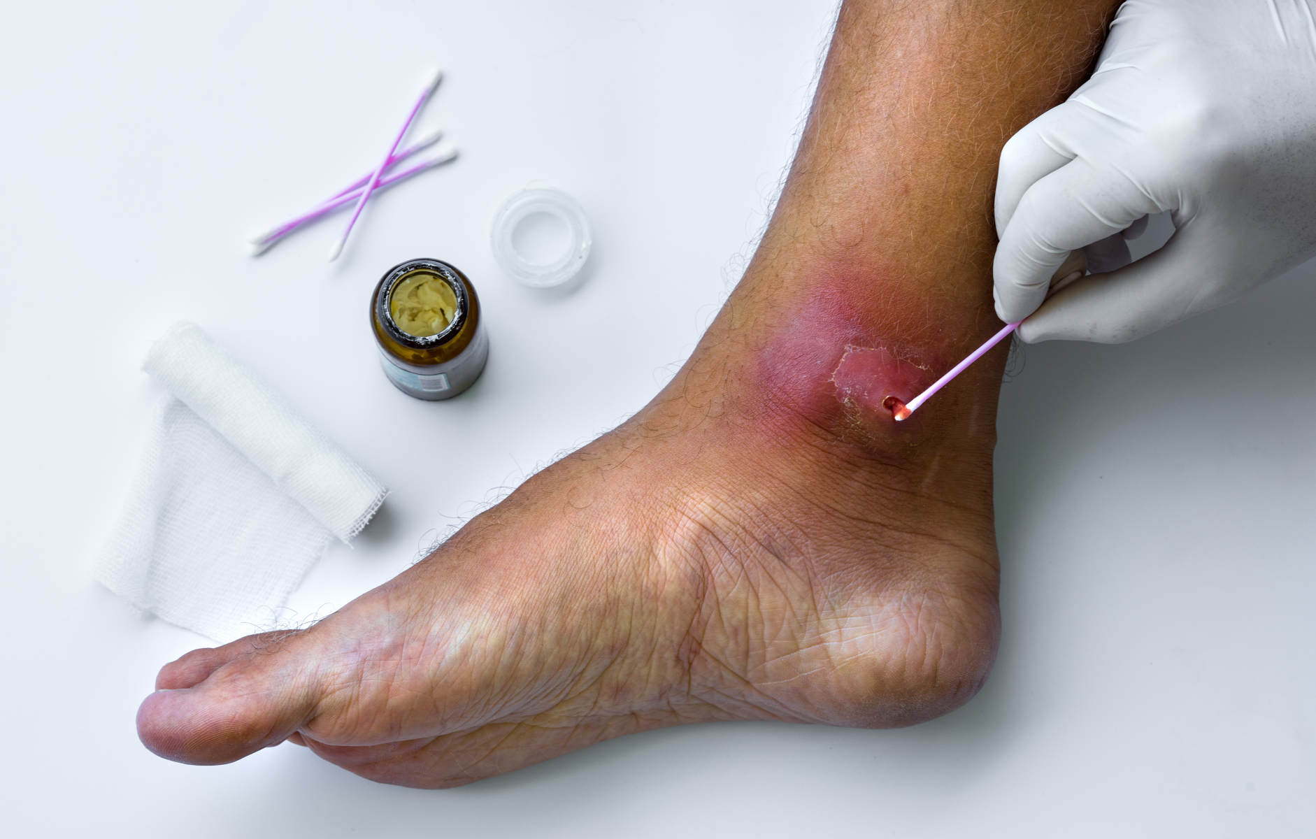 Epäiltäessä syvää tulehdusta eli kun tulehduspesäke on syvemmällä kudoksessa, voidaan tulehduspesäke yrittää tyhjentää toistuvilla injektioilla tai jo parantumassa oleva haava voidaan joutua avaamaan uudestaan tulehduseritteen ja huonon kudoksen poissaamiseksi. Vakavia yleisoireita, kuten korkeaa kuumetta ja verenmyrkytystä hoidetaan sairaalassa suonensisäisellä antibiootilla.