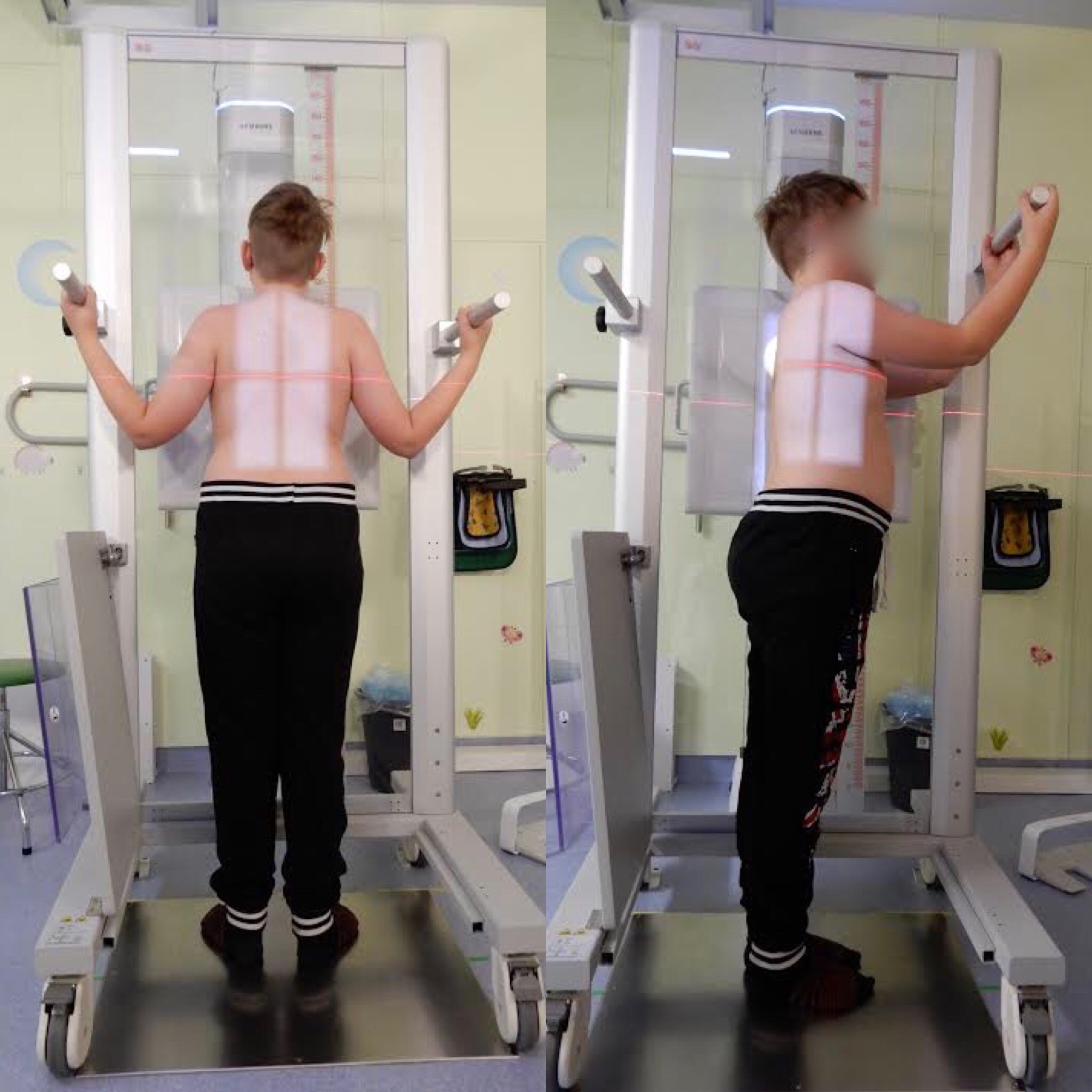Kouluterveydenhuollossa skolioosin kehittymistä seurataan skoliometrin eli selän vinouden kulmamittausapuvälineen avulla. Yli 6 asteen kierto on merkittävä ja lapsi tulee lähettää lasten ortopedin arvioon.