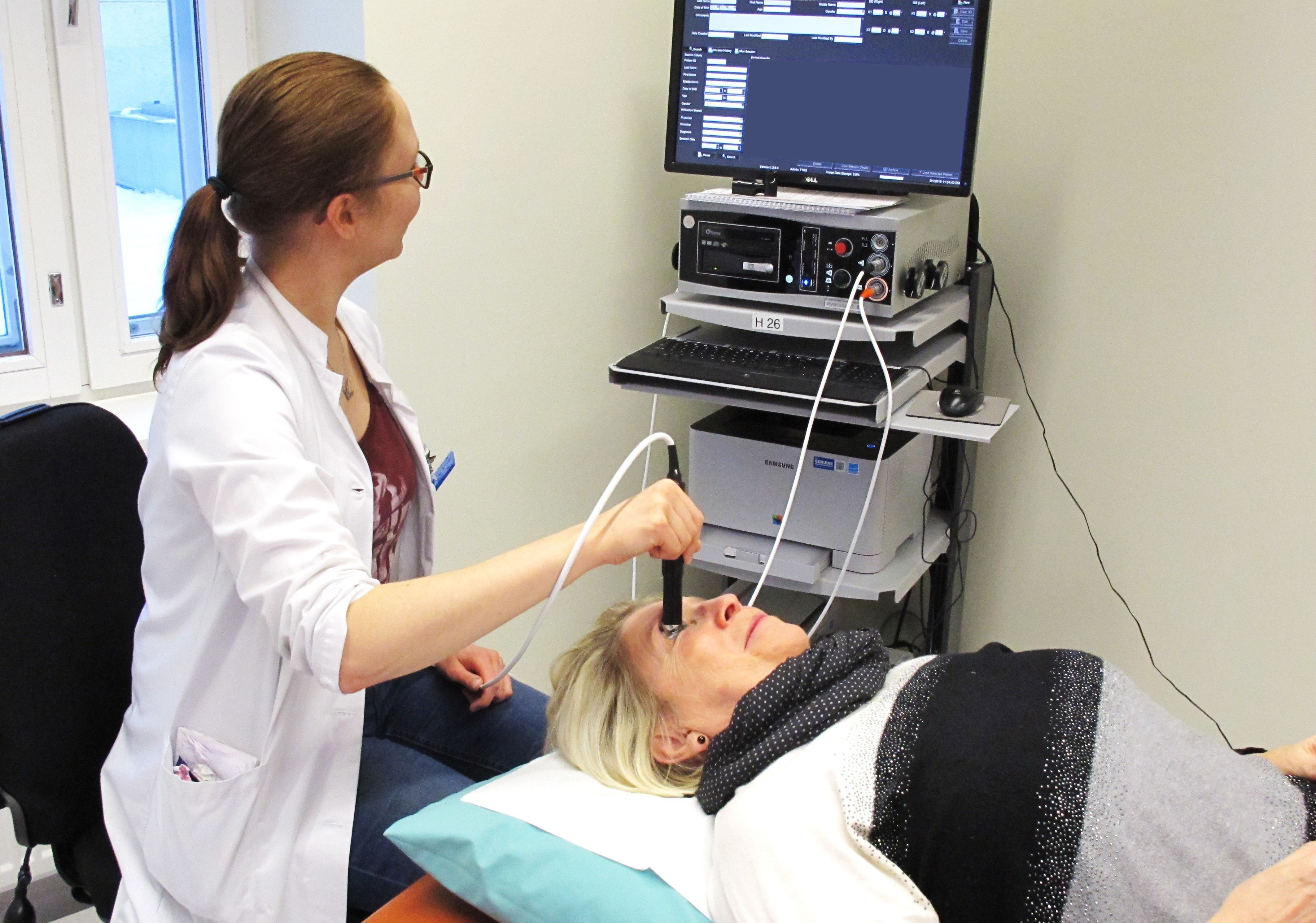 Ultraäänilaitteella voidaan mitata silmän pituus ja tutkia silmän rakenteita silloin, kun esimerkiksi silmänsisäisen verenvuodon, harmaakaihen, sarveiskalvosamentumien tai muiden syiden vuoksi silmän sisään ei saada muuten näkyvyyttä.