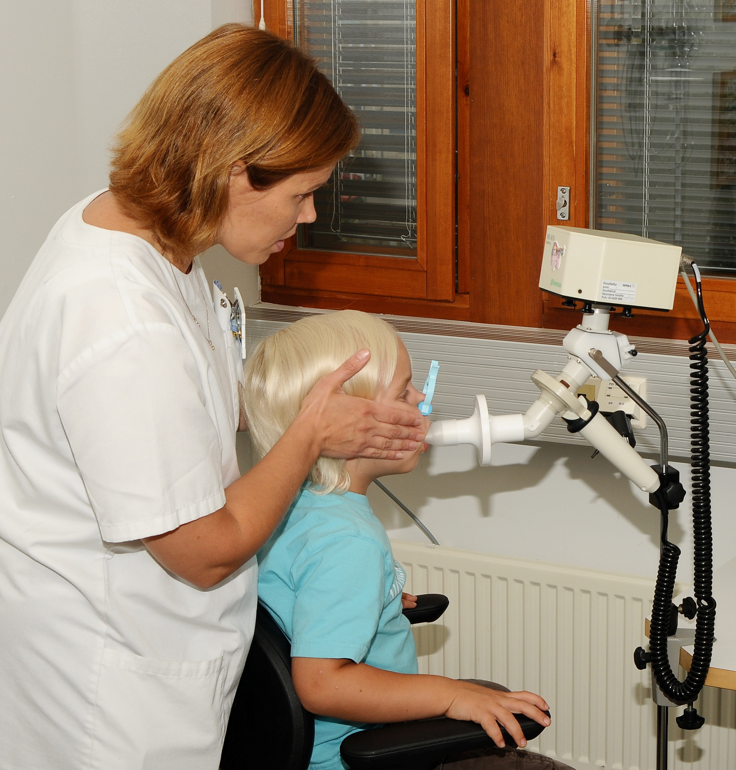 Videon visar hur ett PEF-mäting går till hos barn.