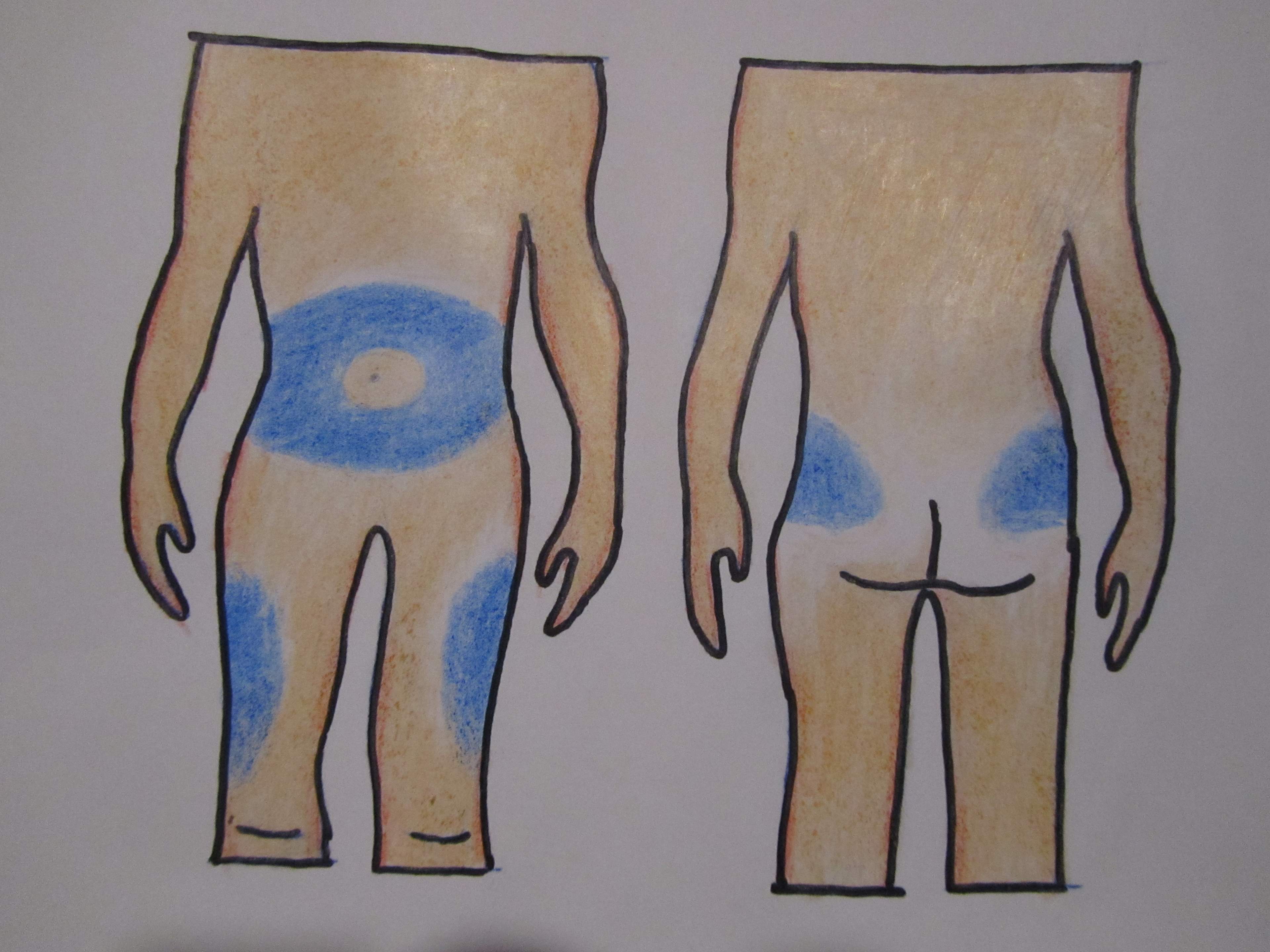 Injektionsställena omfattar magområdet och buksidorna, den yttre delen av låren och den övre delen av skinkorna.