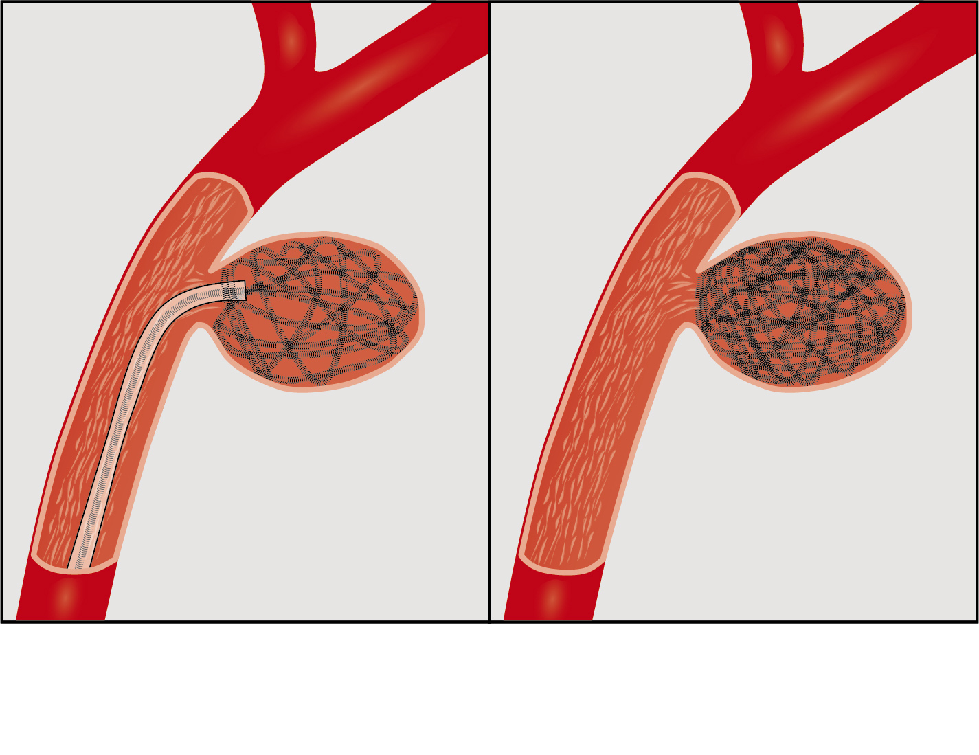 Vid ett intravenöst ingrepp behandlas ett hjärnaneurysm antingen med coils (metalltråd), en stent (nätrör), en flödesavledare (ett tätt nätrör, dvs. flow diverter för att styra blodflödet) eller en kombination av dessa. Syftet är detsamma oavsett teknik, dvs. att helt stänga av aneurysmet i hjärnan, dvs. att isolera det från den normala blodcirkulationen.