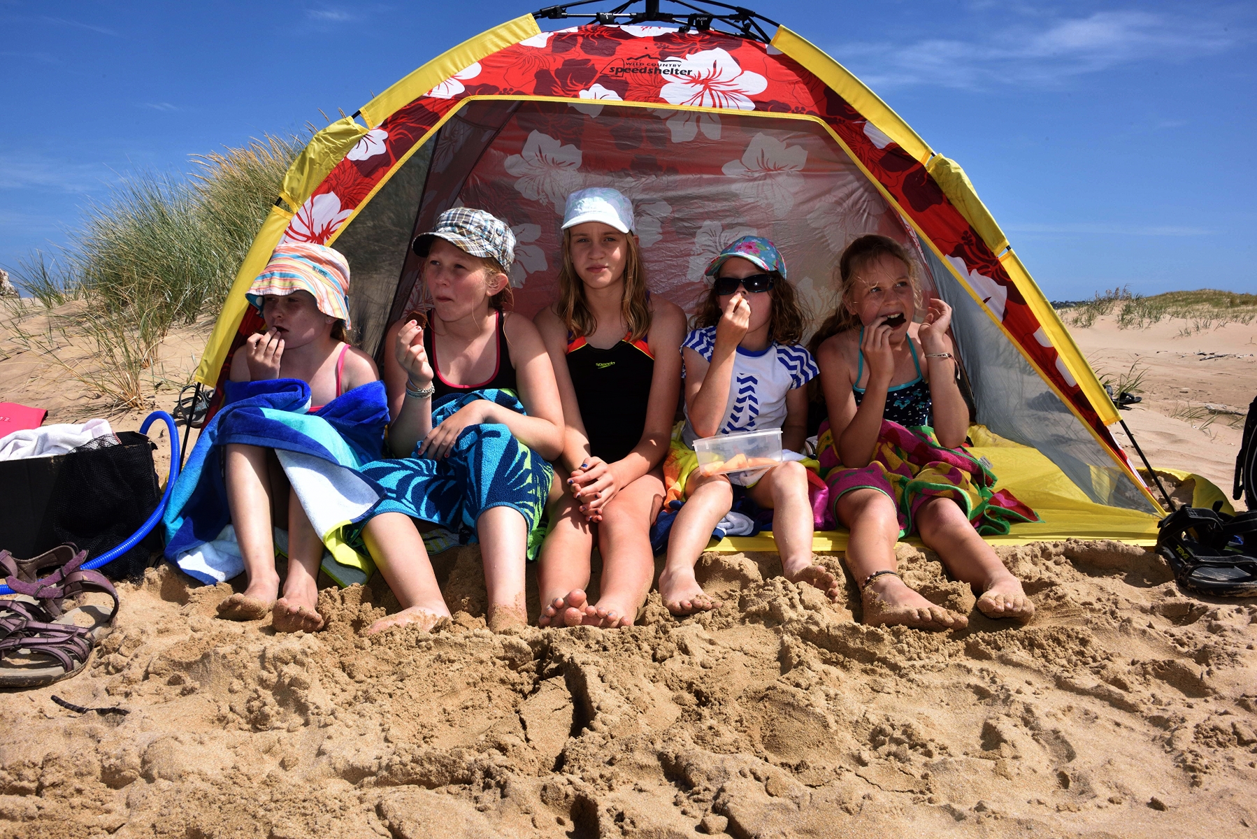 Det bästa sättet att skydda barn från solens UV-strålar är skugga, där det förekommer upp till hälften så mycket UV-strålning som i direkt solljus.