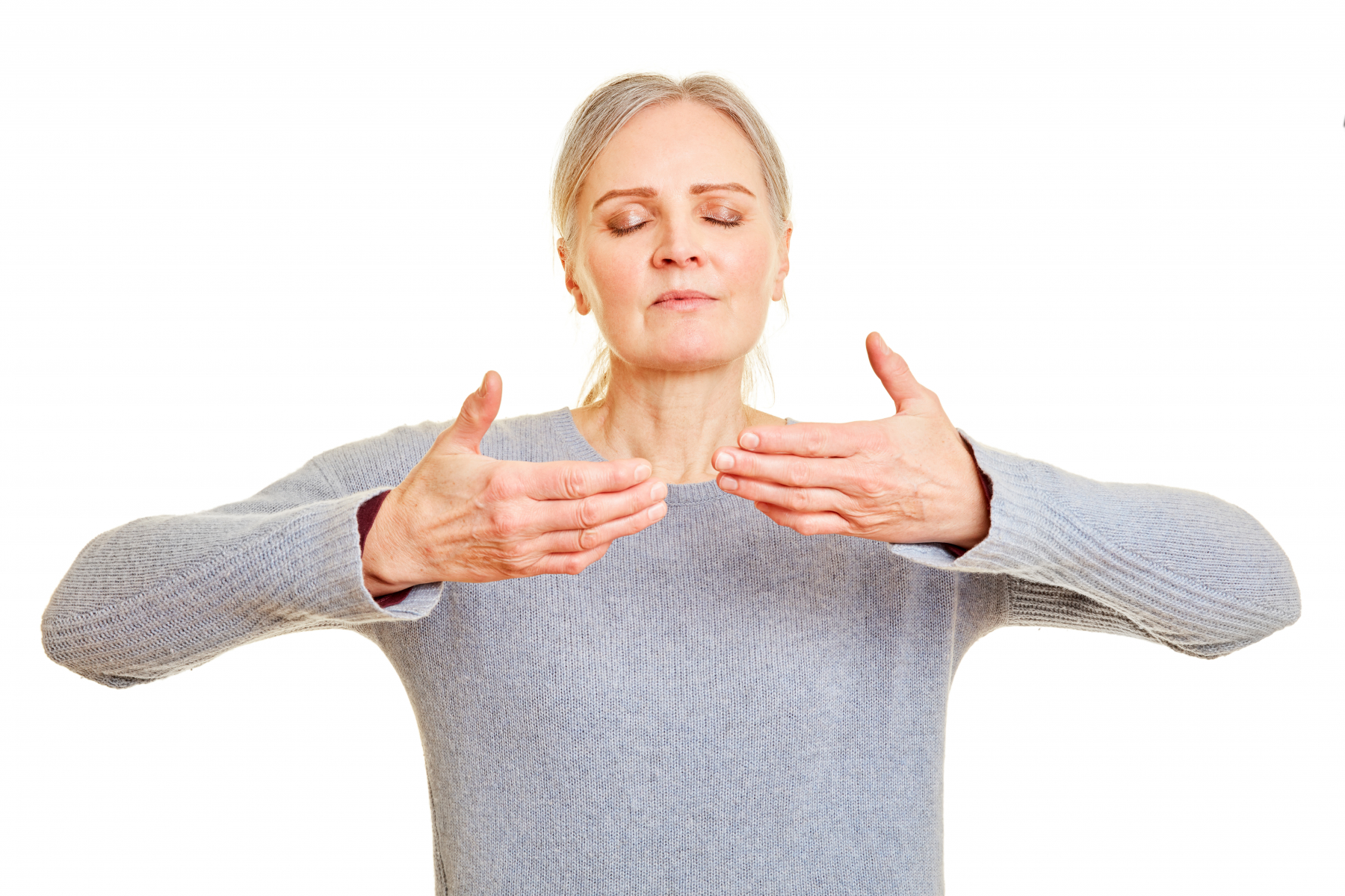 Fördjupa din andning och känn diafragmans rörelser genom att hålla handen på övre delen av buken: buken höjer sig vid inandning och sänker sig vid utandning.